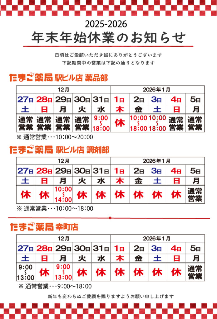 いつも「たまご薬局グループ」をご利用いただき、誠にありがとうございます。
