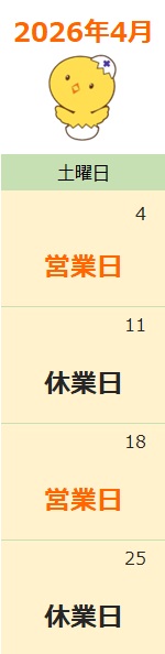 調剤部:土曜日の営業のお知らせ(2026年4月)