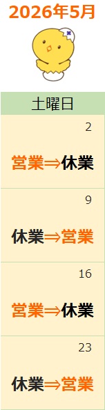 調剤部:土曜日の営業のお知らせ(2026年5月)